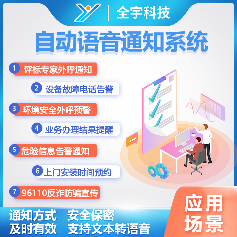 通知系統(tǒng)在預(yù)設(shè)外呼允許時(shí)段時(shí)對專家發(fā)起呼叫,專家接聽完畢需按鍵確認(rèn)是否參加,全宇智能通知系統(tǒng)實(shí)時(shí)將外呼人員是否接通、專家是否參加等信息回傳給抽取系統(tǒng),由抽取系統(tǒng)記錄并確認(rèn)是否需要補(bǔ)抽及再通知等,對于確認(rèn)參加投標(biāo)的專家,語音通知系統(tǒng)還可以發(fā)送短信的方式進(jìn)行再次提醒;系統(tǒng)還可以設(shè)定外呼時(shí)間段,避免打擾到參與者的工作和生活。