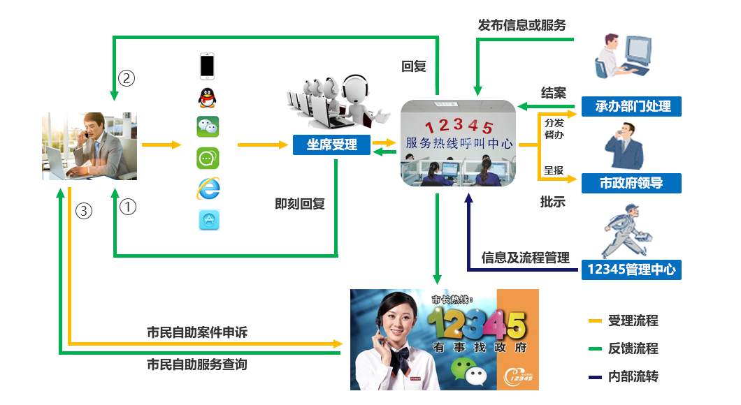 鑒于此,12345市長熱線系統為了更好地方便市民咨詢、求助和反映問題并及確保能夠得到相關部門及時的響應解決方案如下: